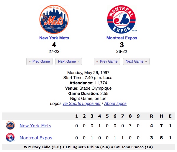 Sports: New York Mets at Montreal Expos