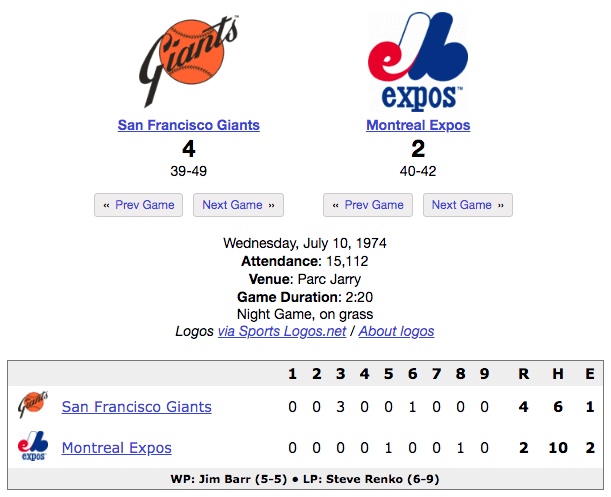 Sports: San Francisco Giants at Montreal Expos