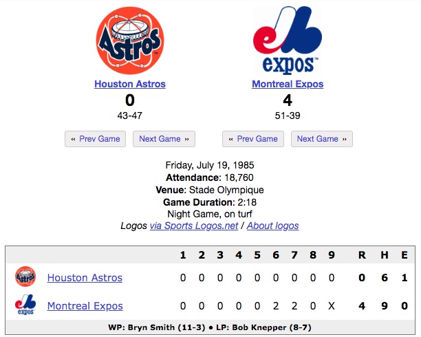 Sports: Houston Astros at Montreal Expos