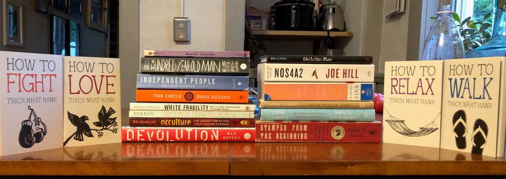 I first dipped my toe back into book shopping with a little online purchasing. That’s how I ended up with Ibram X. Kendi’s Stamped From the Beginning: The Definitive History of Racist Ideas In American and White Fragility: Why It’s So Hard for White People to Talk About Racism by Robin Diangelo. Both books were on my list for a while, and I was spurred to buy them by the nationwide events that took a turn for the revolutionary back in late spring. As I wrote in part 1, I’m working on Kendi’s How To Be an Anti-Racist right now, but I’m eager to get into these two, as well.