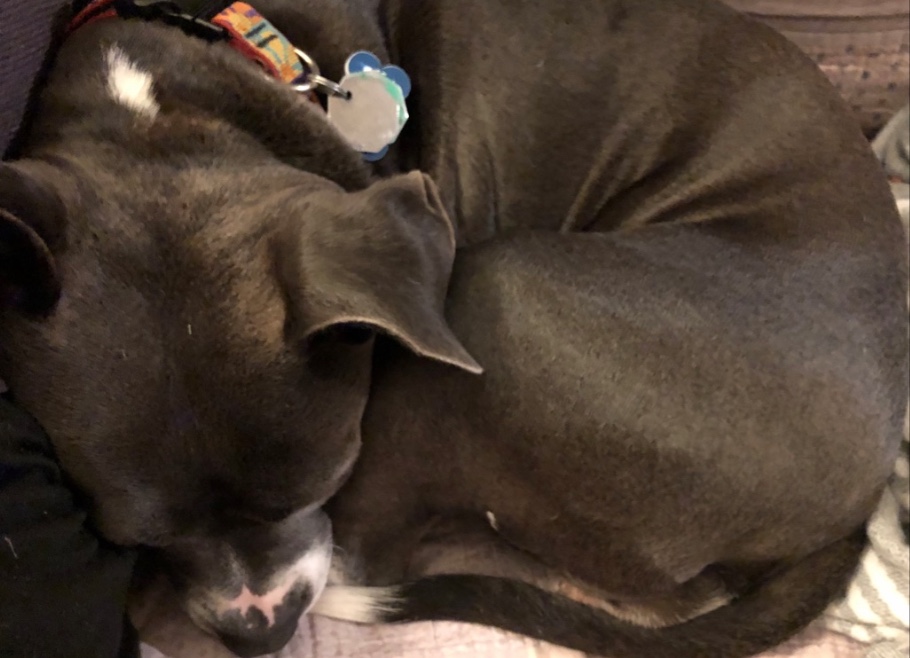 Saturday night, Ziti was intensely nesting on our bed and panting. We thought the painkiller hadn’t kicked in and she was trying to manage her soreness. Eventually she settled in and went to sleep. We woke up to a different dog Sunday morning.