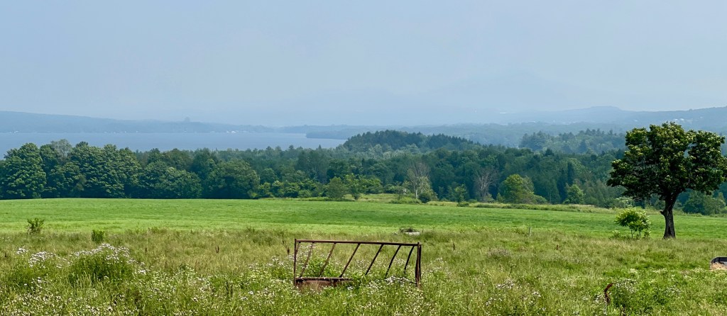 WELCOME TO FRANKLIN: Smoke from Canadian forest fires has plagued the atmosphere this summer. This photo of Lake Carmi was taken yesterday from Route 120. There was heavy, smoky haze, but it wasn’t the worst it’s been this summer. This morning when I woke up around 5:30, the air quality was at 145, which indicates a high risk for kids, the elderly, and others with respiratory issues. The thing is, while none of this is good, it’s far worse for those living with the actual wildfires. It’s way better here than it is there.